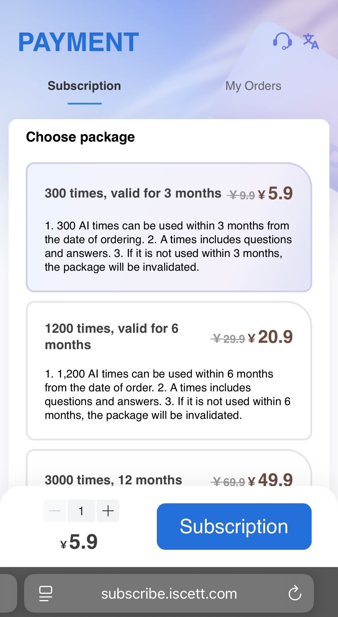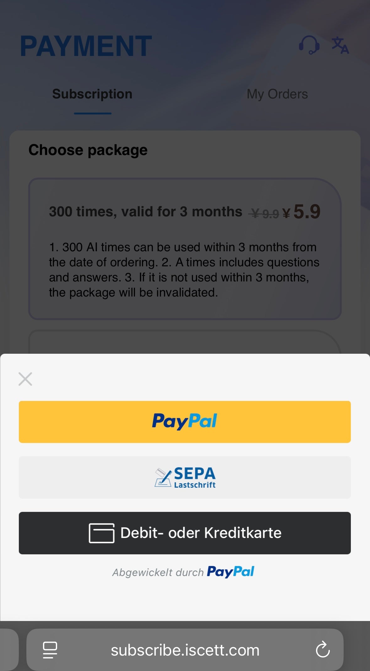 Das gewünschte Credit‑Paket aus der Preistabelle auswählen